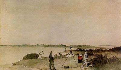 ..."До 1848 года Аральское море изображалось на картах только по рекогносцировкам, произведенным в некоторых местах, по поверхностным маршрутным съемкам на западном берегу и, главное, по собранным от киргизов распросным сведениям... В 1847 году перевезли для описи Аральского моря разобранную шхуну "Николай"..., она успела в то лето сделать только съемку части восточного берега на семьдесят верст к югу от Сырдарьи, с прилегающими островами и части острова Кугарала. В первую половину лета 1848 года гг. Акишев и Голов... произвели на шхуне "Николай" планшетную съемку всего северного берега, от устьев Сыра до Кумсуата. В начале 1848 года я имел честь быть назначен начальником описной экспедиции Аральского моря..." (А. Бутаков). Первое полное научное изучение и описание дотоле неведомого моря было осуществлено именно экспедицией А. Бутакова 1848-1849 гг. Т. Шевченко участвовал в ней от начала и до конца,впервые в истории запечатлев Арал, его острова и берега в обширной серии акварелей, карандашных рисунков и множестве эскизных набросков с натуры...